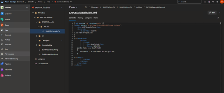 Create a new project inside your Git repo path and link it to the BASOFADemoGit model. Add a new class (e.g., BASOFAExampleClass) and write some simple X++ code.